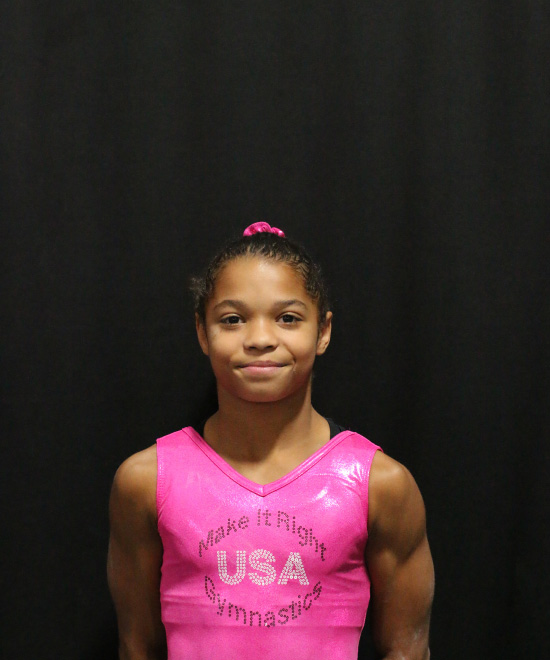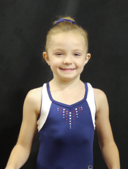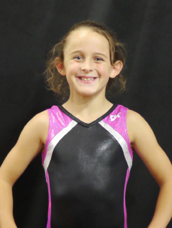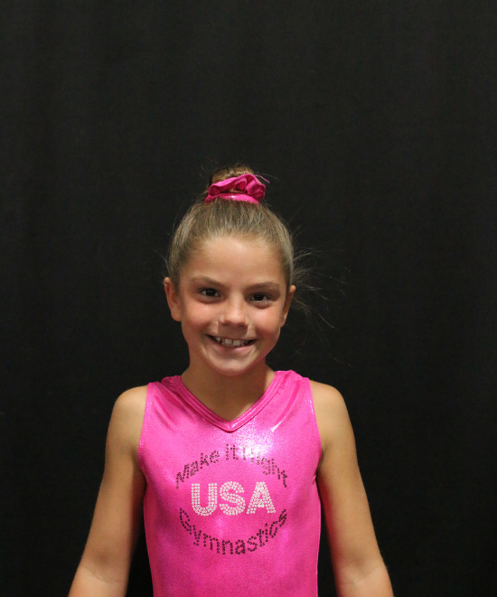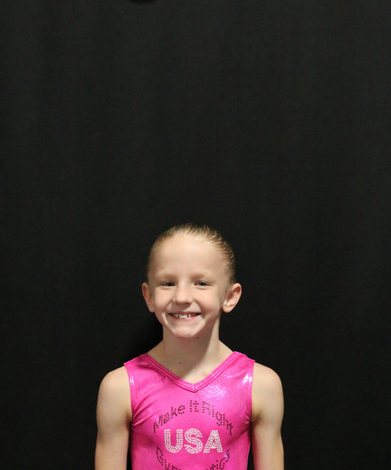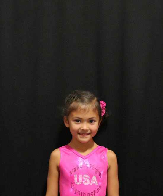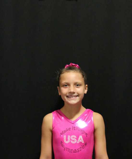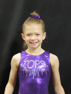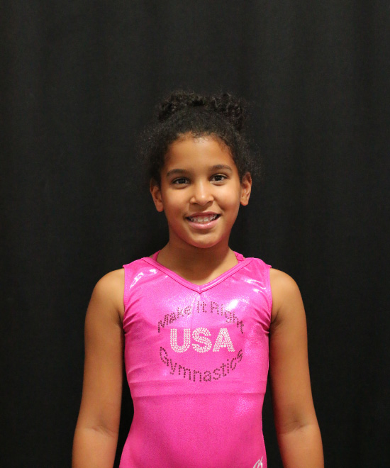 I am an 8-year-old TOPs gymnast competing level 4/5. I enjoy conditioning and practicing my skills because it helps me do what I love the most, which is competing. When I'm not at the gym, I enjoy spending time with my family and playing with my IPad.